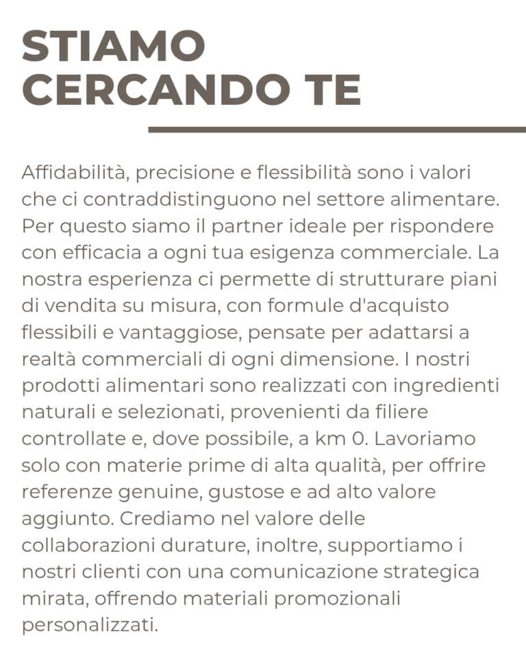 SIAMO ALLA COSTANTE RICERCA DI PARTNER COMMERCIALI