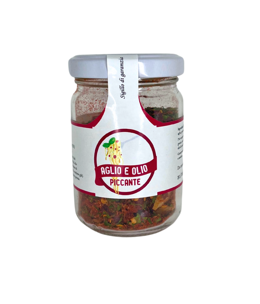 Preparazione: portiamo a bollire l'acqua e buttiamo giù 500g di spaghetti. Nel frattempo che la pasta si cucina, mettiamo in un tegame circa 3 cucchiai di olio extra vergine d'oliva e un cucchaio di Aglio e olio (non è neccesario il sale perchè già lo contiene). Far soffrigere per circa 3 minuti. Appena la pasta è pronta, la versiamo nel preparato e amalgamiano bene. Ecco a voi servito.