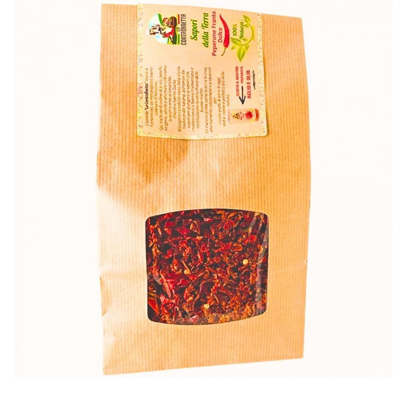 Il peperone dolce "La Contadinetta" è stato ricavato da un'attenda coltivazione naturale, inoltre la procedura di essiccazione resta quella tramandata dai nostri nonni, che lascia inalterato il sapore e il profumo.