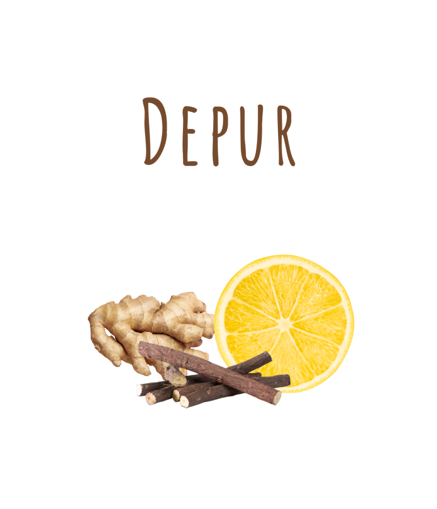 Riscopri il piacere del benessere quotidiano con Depur, l’infuso naturale a base di Zenzero, Limone e Liquirizia, ingredienti apprezzati da secoli per le loro proprietà depurative, digestive e rinvigorenti. Un momento di equilibrio che stimola, purifica e rinfresca corpo e mente.